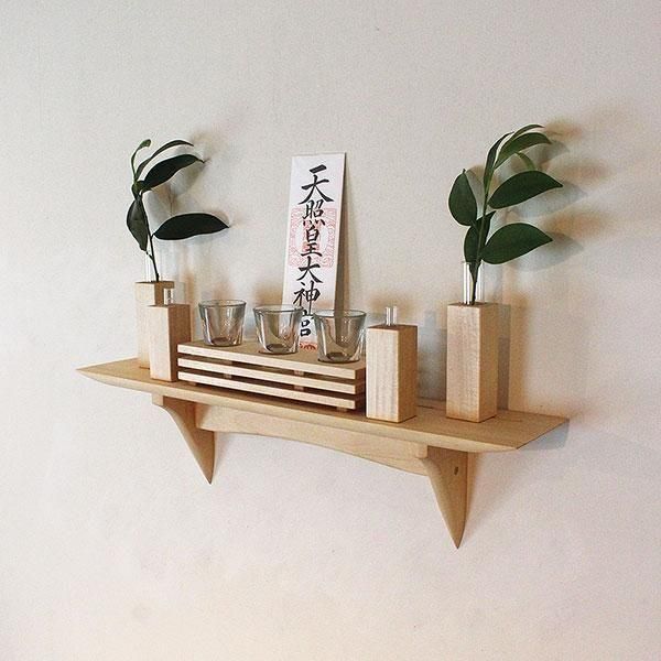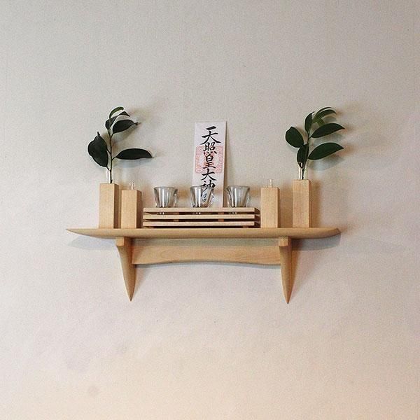 ハンドメイドで無垢材100%!モダン神棚、神具セット「タナプラス110+そなえホワイト」