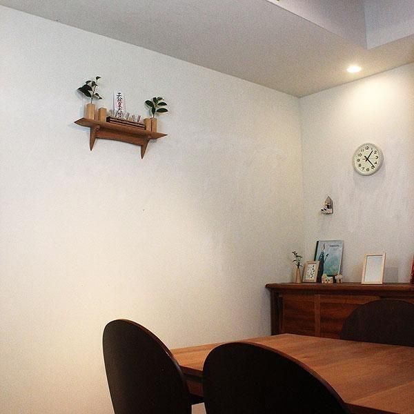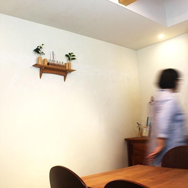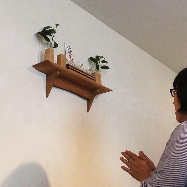 壁掛け飾り棚タナプラス110+そなえクルミは、モダンな壁掛け棚と現代的神具の融合を追求。