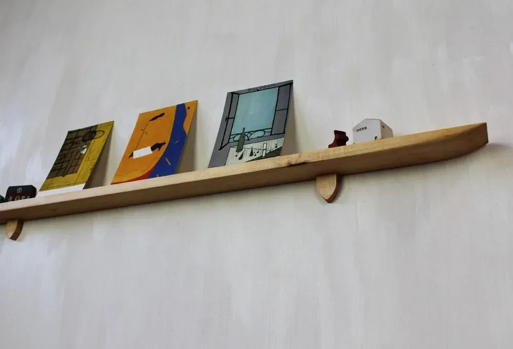 家具工房イオリスペースでは、さまざまな種類の無垢材を使って、次のようにおしゃれな壁掛け棚を作っています。
