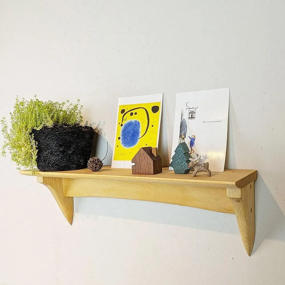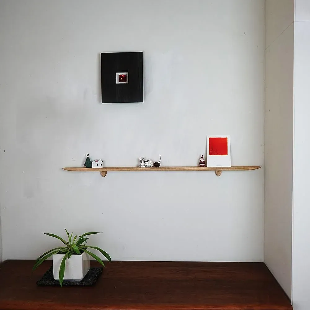 木材の壁掛け棚は、温かみがあるやわらかな雰囲気になるのが特徴で、ほかの素材のケースや家具などともよく調和します。