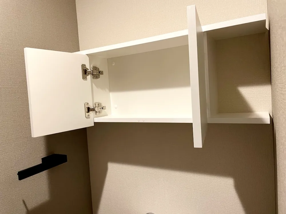 無機質になりがちなトイレの壁に飾り棚をつけると、落ち着いてリラックスできる雰囲気を作れます。