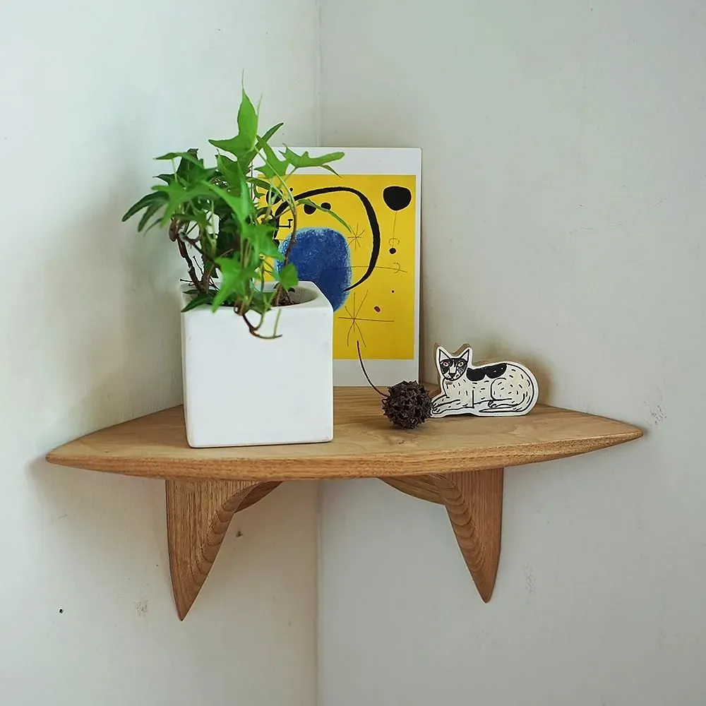 壁のコーナーを活用して飾れるタイプの、おしゃれなコーナーシェルフです。
