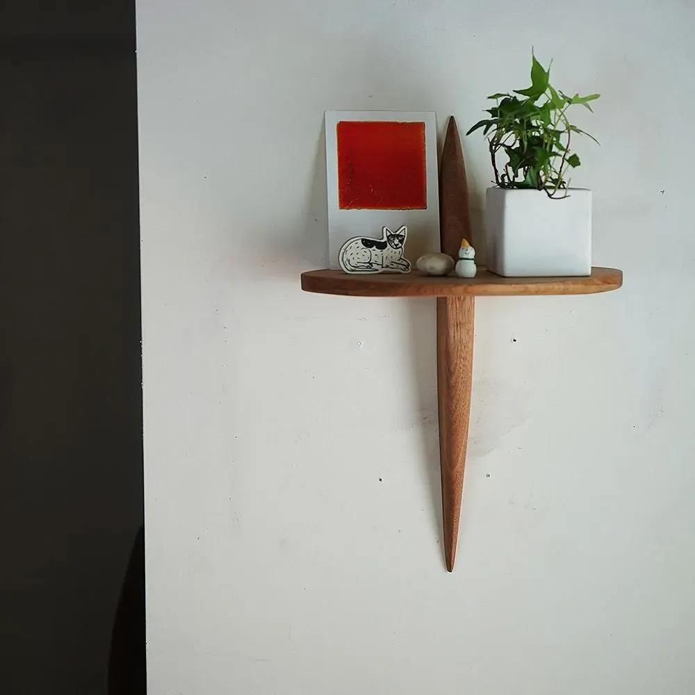 L字型の飾り棚を壁にそのまま取り付けるものや、壁に取り付けた棚受けで棚板を支えるものなどがあります。
