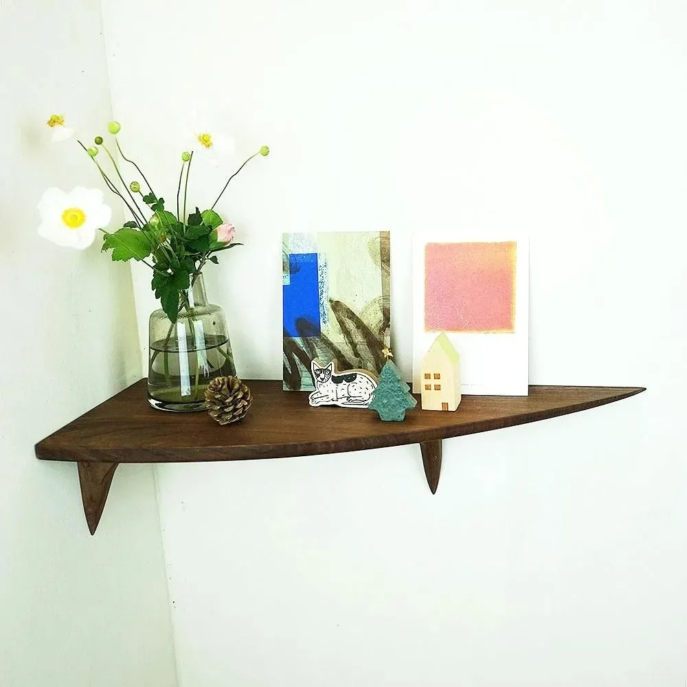コーナーシェルフ カドロングゼロ ウォールナットは、あえて非対称にデザインされた個性的なコーナーシェルフです。