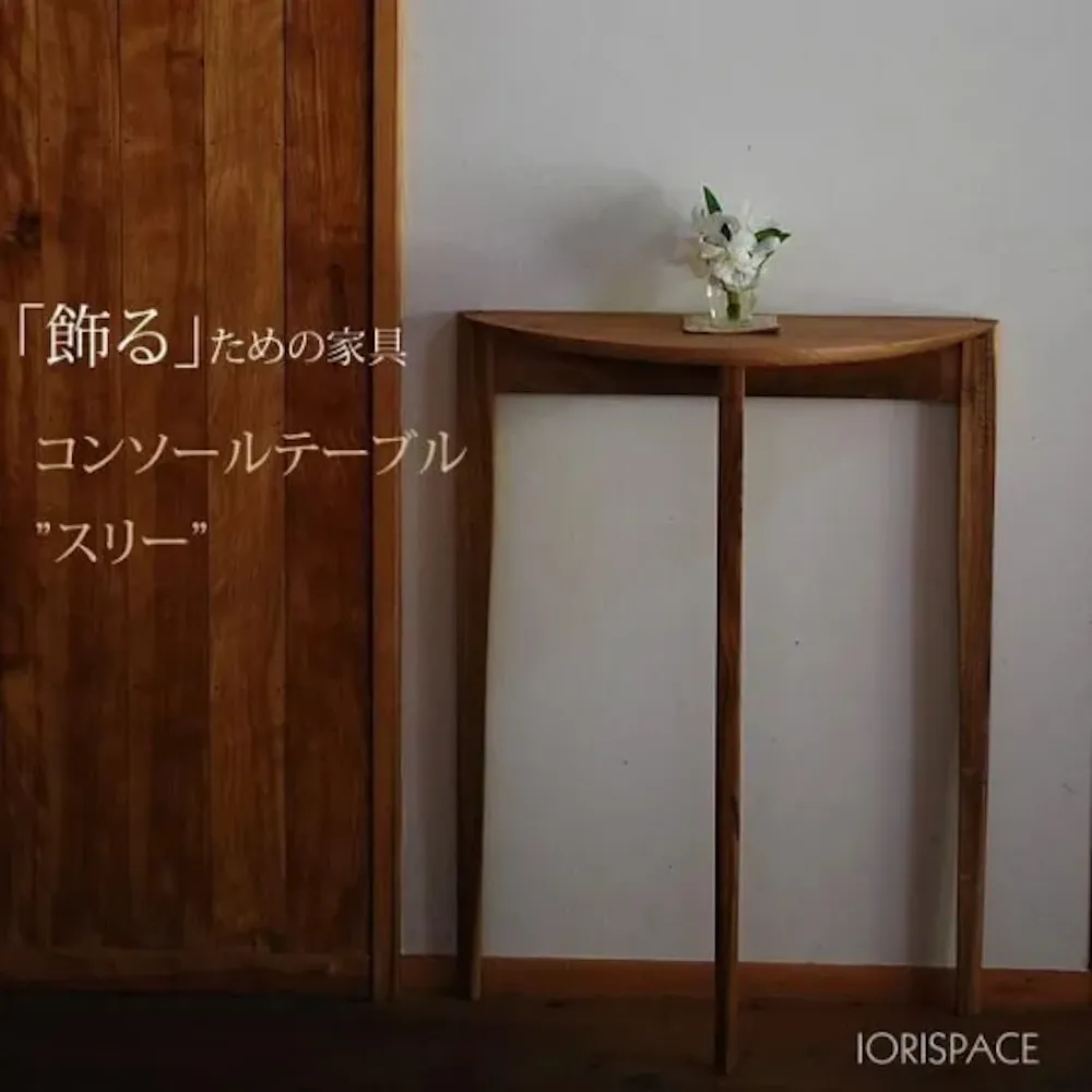 コンソールテーブル スリー クルミモデルは、ナチュラルモダンな雰囲気をもつスリムな飾り棚です。