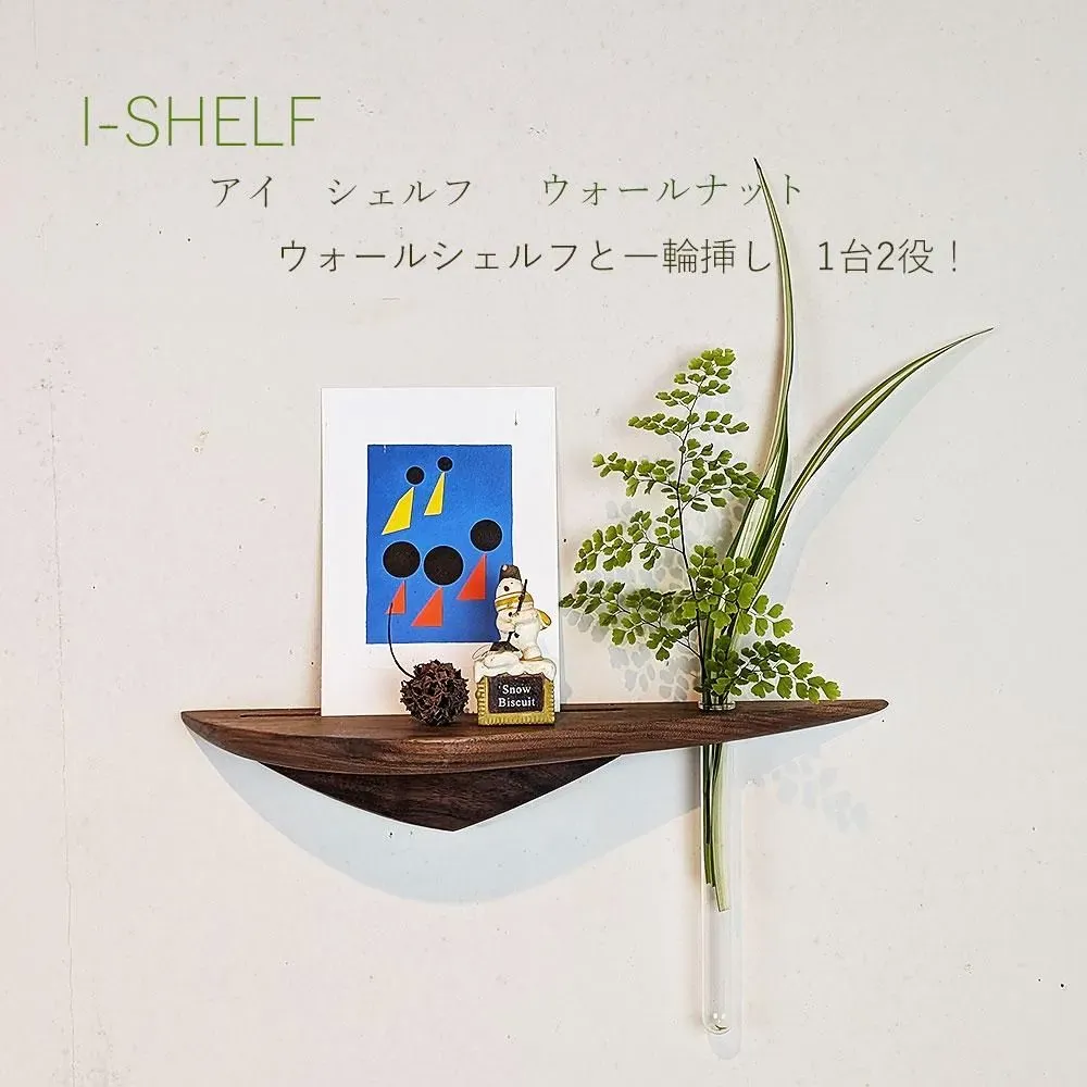 - 4.ウォールシェルフ&一輪挿し 【I shelf アイシェルフ ゼロ ウォールナット】
