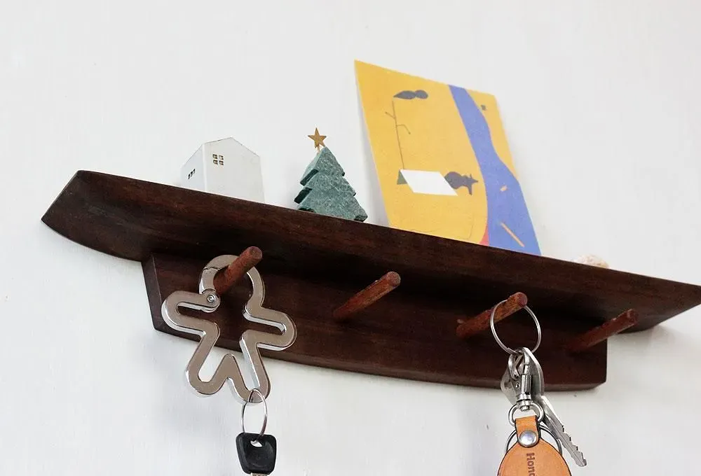 耐荷重が10kgで石膏ボード壁にも板壁にも取り付けられるので、お気に入りのアンティーク風小物を並べて飾りたいときにおすすめします。