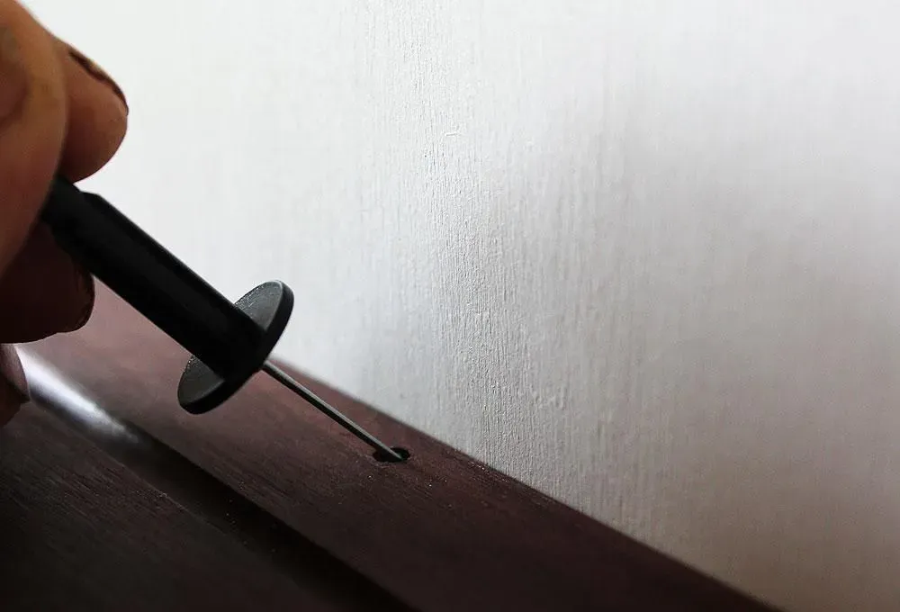材質の簡単な調べ方として、壁に画びょうを刺して白い粉が付く場合は石膏ボード、何も付かずに深く刺さる場合は壁の内部に柱がある可能性が高いです。