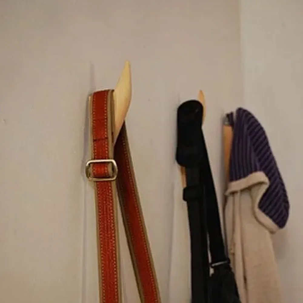 木製フックの「CURVE(カーブ)クルミ」は、そのまま服や鞄が掛けられる壁掛けフックです。