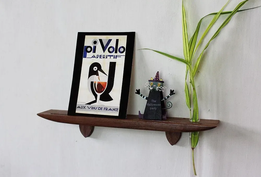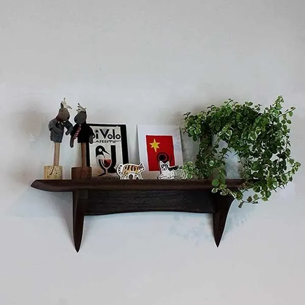 ウォールナットの上質感に、丸みのあるデザインで軽やかさも加わった、粋なウォールシェルフです。